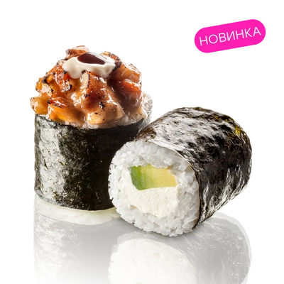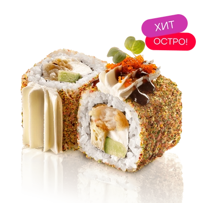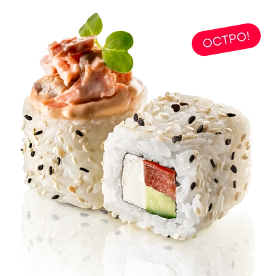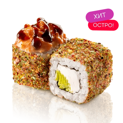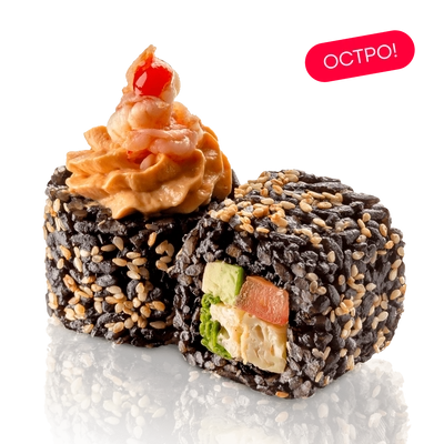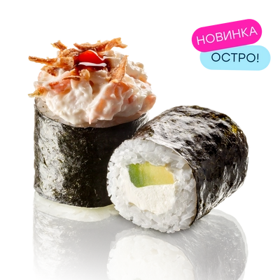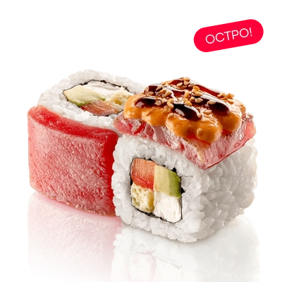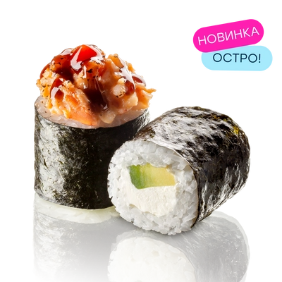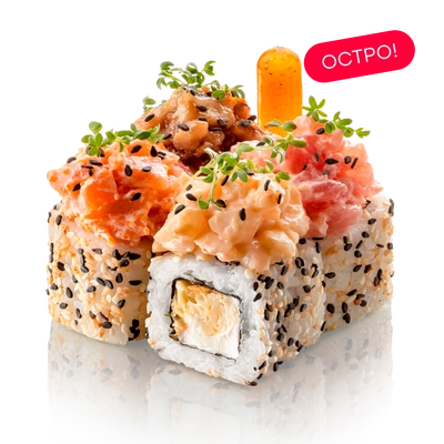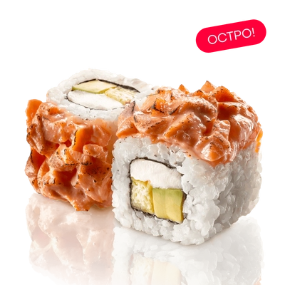 Тартар ролл с лососем и шиитаке под соусом спайс