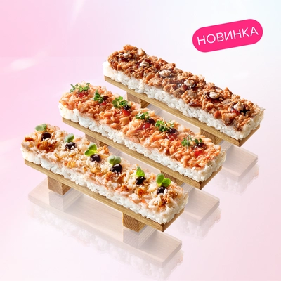Поке на подушке из риса с лососем и тунцом