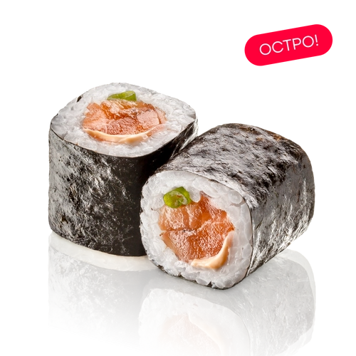 Лосось холодного копчения, зеленый лук, соус спайси, нори, рис заправленнный