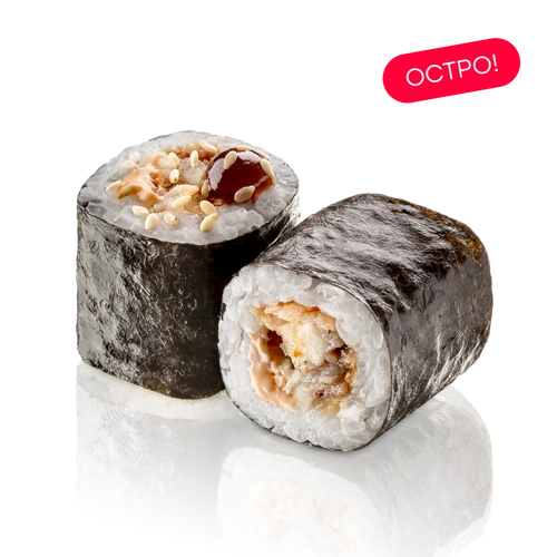 Угорь, соус спайси, соус унаги, кунжут, нори, рис заправленный