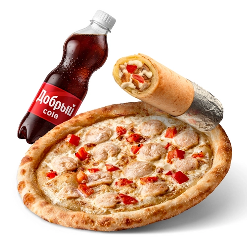 Пицца Хот Чикен 25 см / Фудстер Чикен фреш / Добрый Кола 0,5 л