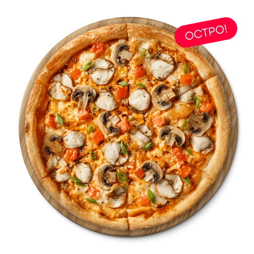 Соус Том Ям, куриное филе, моцарелла, шампиньоны, томаты, зелёный лук, кунжут