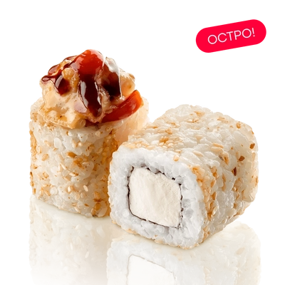 Угорь, тигровая креветка, два вида сыра, икра тобико, майонез, соус унаги, нори, рис заправленный