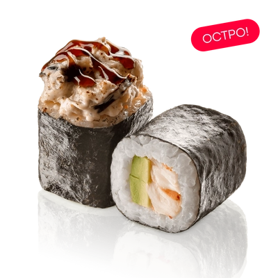 Креветка, сливочный сыр, авокадо, соус спайси, соус унаги, соус шрирача, нори, рис заправленный
