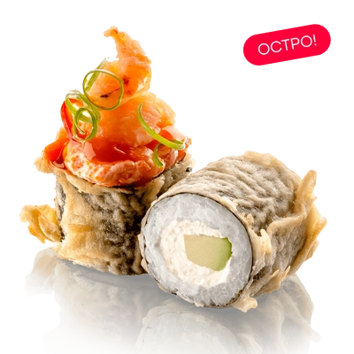 Тигровая креветка, авокадо, тамаго, сырный соус, кляр, нори, рис заправленный