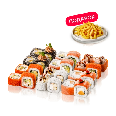 КАРТОФЕЛЬ ФРИ В ПОДАРОК! Бангкок 1/2 / Гонконг 1/2 / Шиитаке 1/2 / Эквадор 1/2 / Бостон 1/2 / Сяке Фрай Маки 1/2